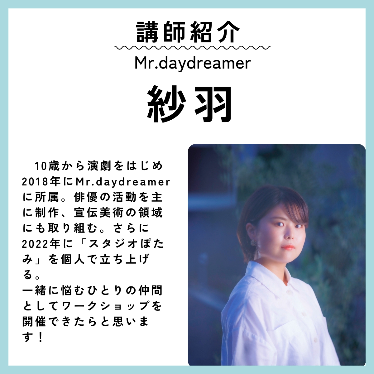 紗羽(Mr. daydreamer/俳優/制作/宣伝美術)
